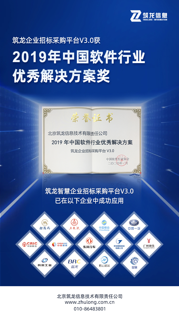 摘要:北京筑龍企業(yè)招標采購平臺 獲2019年中國軟件行業(yè) 獲2019年中國軟件行業(yè)