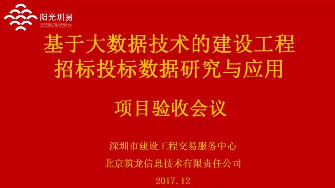 2017年12月14日上午,由深圳市建設工程交易服務中心和北京筑龍信息技術有限責任公司聯(lián)合完成的“基于大數(shù)據(jù)技術的建設工程招標投標數(shù)據(jù)研究與應用”科研開發(fā)項目順利通過住房和城鄉(xiāng)建設部專家組驗收。