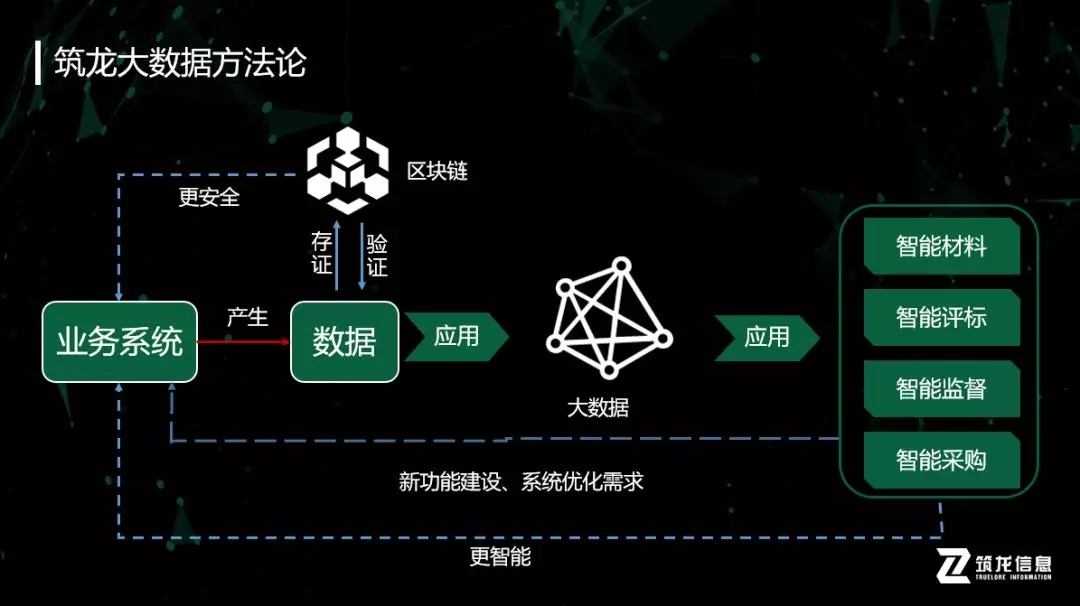 當業(yè)務(wù)系統(tǒng)產(chǎn)生的數(shù)據(jù)得到了積累,就可以通過大數(shù)據(jù)平臺的建設(shè)來挖掘數(shù)據(jù)的價值。在大數(shù)據(jù)平臺當中我們可以洞察交易內(nèi)容、解析主體特征、監(jiān)管各方行為、評估行業(yè)市場等等,而現(xiàn)在筑龍所做的,就是通過十幾年來積累的數(shù)據(jù),不斷分析挖掘,找出更多的適合現(xiàn)在業(yè)務(wù)系統(tǒng)的智能應(yīng)用功能,利用“智能”來解決以往系統(tǒng)解決不了的問題,可以說,大數(shù)據(jù)、智能化是突破招標采購困局的必經(jīng)之路。
