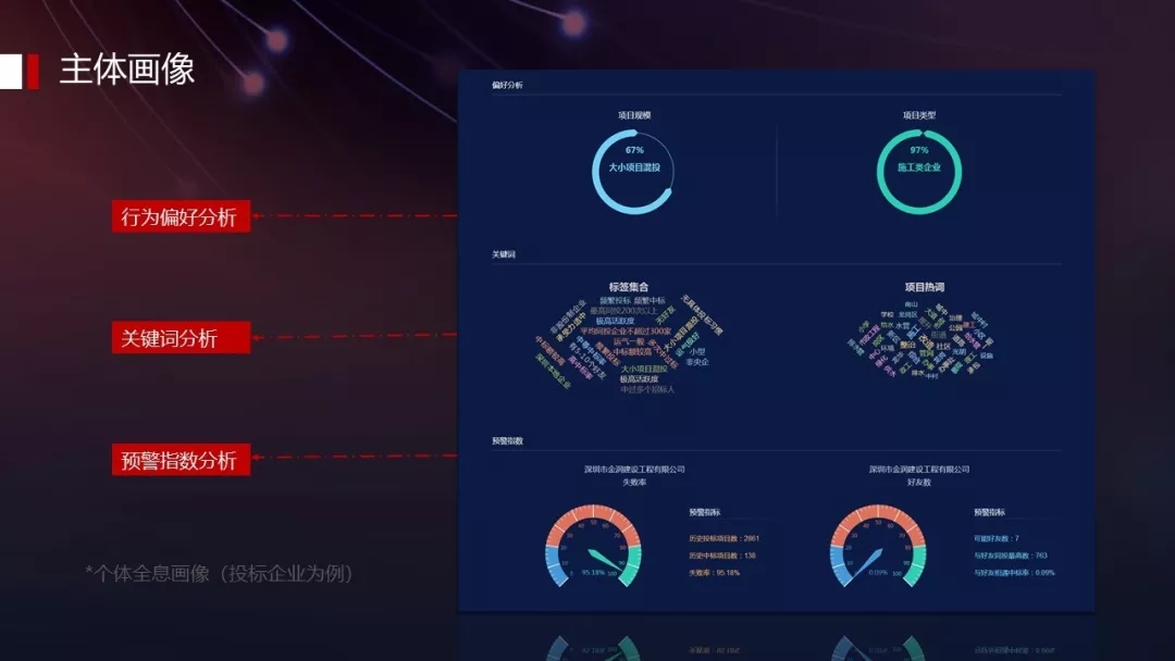 如何識別一個企業(yè)的報價是否是惡意低價?當我們對一個企業(yè)充分了解的時候,我們就可以進行判別。那么如何對一個企業(yè)充分了解,北京筑龍引入了大數(shù)據(jù)的“主體畫像”來深入分析交易主體的全維畫像。