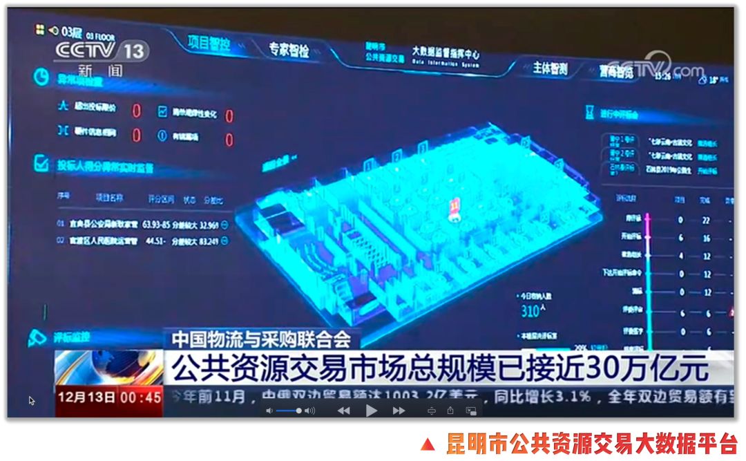 報道25秒處,昆明市公共資源交易大數(shù)據(jù)亮相。作為國內較早應用公共資源交易大數(shù)據(jù)平臺之一,由北京筑龍建設的昆明市公共資源交易大數(shù)據(jù)產(chǎn)品擁有完善的功能模塊以及相對豐富的展現(xiàn)形式。