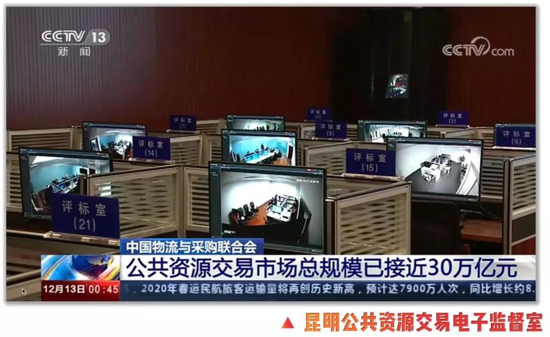 報道58秒處,展示了昆明市公共資源交易電子監(jiān)督室。中心將24個評標室的音視頻監(jiān)控進行統(tǒng)一集成,監(jiān)督人員可以通過電腦實時監(jiān)控評標室整體情況以及專家的打分操作界面,讓監(jiān)督更簡單、更有力。