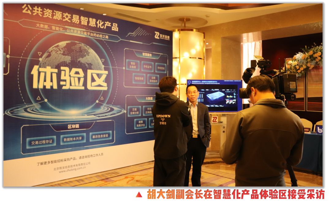 中物聯(lián)公共采購分會胡大劍副會長接受采訪的地方,是本次論壇特設的公共資源交易智慧化產(chǎn)品體驗區(qū),該展示區(qū)由北京筑龍信息技術有限責任公司負責,提供包括智能開標、智能評標、招標采購大數(shù)據(jù)、標事通、智能清標等一系列智慧化產(chǎn)品的展示。