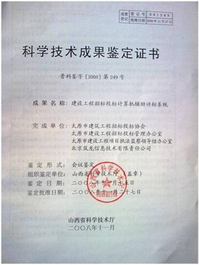 圖-2008年太原市建設(shè)工程評標(biāo)系統(tǒng)獲省級科學(xué)技術(shù)成果