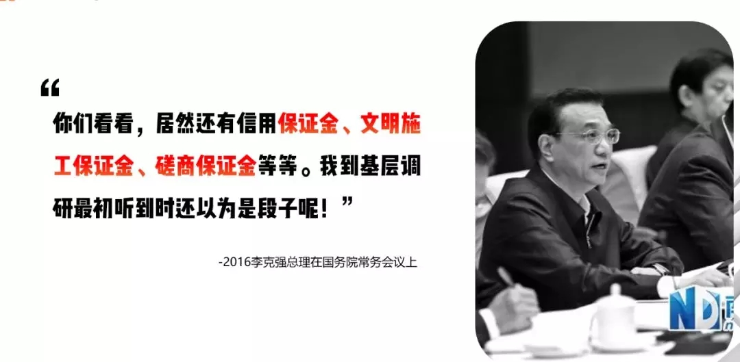 總理的一番話也反映了政府高層對(duì)于“放管服”深入開展的大背景下,對(duì)于企業(yè)仍然面臨如此名目繁多的資金擔(dān)保感到震驚。