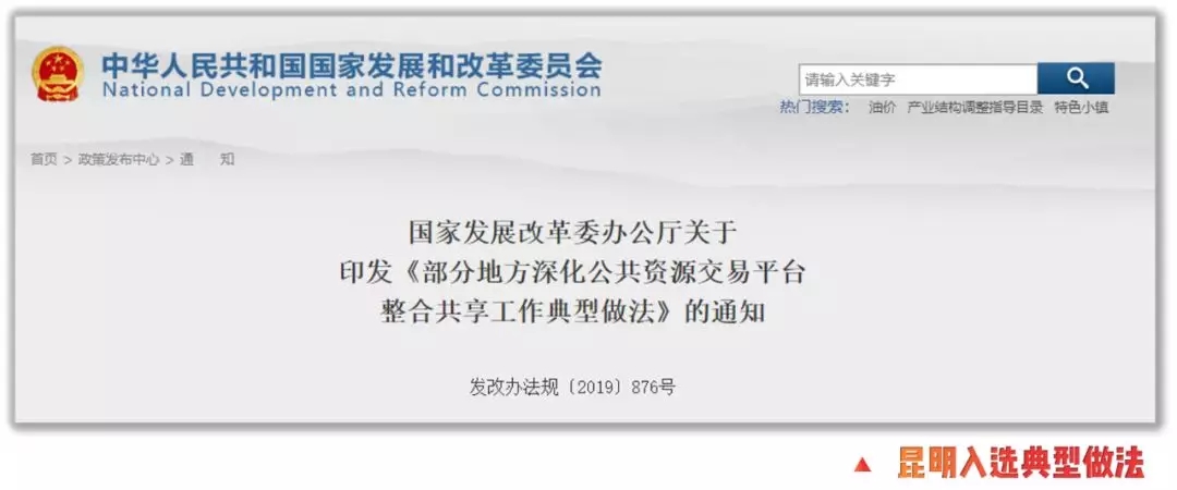 今年8月,國(guó)家發(fā)改委印發(fā)《部分地方深化公共資源交易平臺(tái)整合共享工作典型做法》,昆明市的典型經(jīng)驗(yàn)和創(chuàng)新做法印發(fā)全國(guó),供各省、自治區(qū)、直轄市學(xué)習(xí)借鑒。昆明市是唯一著重于監(jiān)管的創(chuàng)新做法,也是推廣名單中唯一的西部城市。