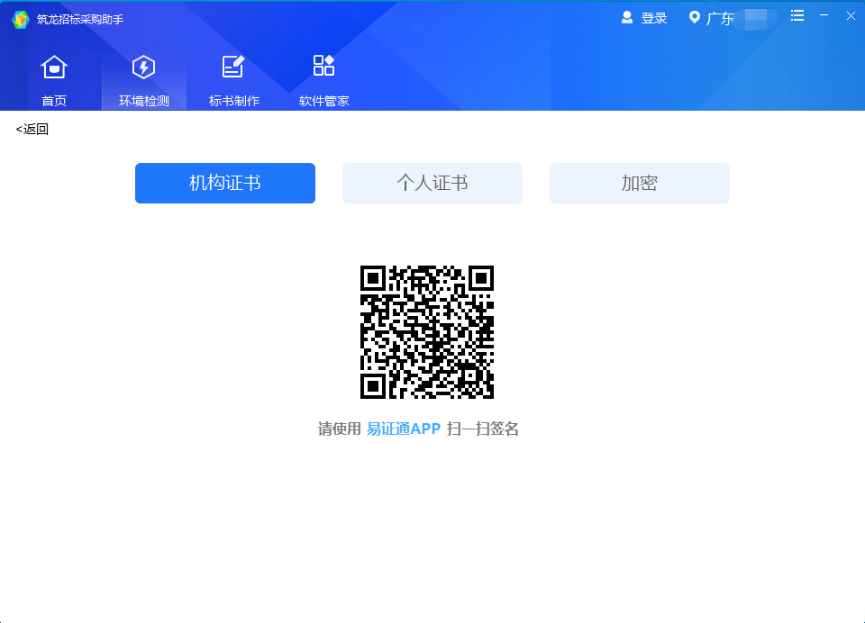 掃碼簽名檢測(cè)功能與CA簽名檢測(cè)功能類似,需要用戶使用易證通APP進(jìn)行掃碼檢測(cè)驗(yàn)證。
