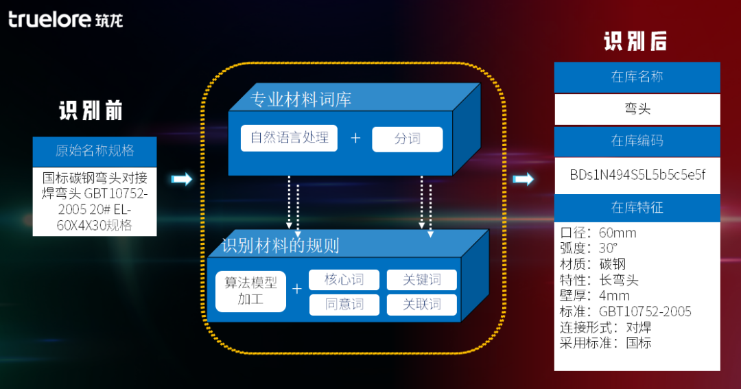 今年9月,北京筑龍與招商局集團招投標中心聯(lián)合研發(fā)的“物料標準化識別技術(shù)”(又名“智能物料”)技術(shù)榮膺2020年度中國物流與采購聯(lián)合會科技進步獎二等獎。該技術(shù)運用應用軟件工程、大數(shù)據(jù)和人工智能等技術(shù)解決企業(yè)在物料采購中遇到的物料歸類不一致、一碼多物、一物多碼的問題,讓企業(yè)招標采購更加高效、智能、低成本。所以說,行業(yè)價值不再由單獨個體創(chuàng)造,而是需要與客戶共同創(chuàng)造。此為融合。