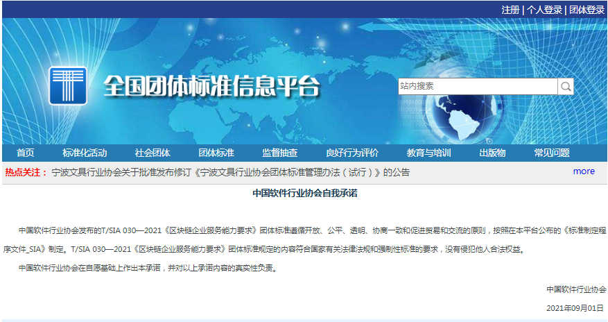 近日,中國軟件行業(yè)協(xié)會對外正式發(fā)布了T/SIA 030—2021《區(qū)塊鏈企業(yè)服務(wù)能力要求》團體標(biāo)準(zhǔn),該標(biāo)準(zhǔn)自2021年9月1日起實施。標(biāo)準(zhǔn)規(guī)定了區(qū)塊鏈服務(wù)企業(yè)能力的一般要求,包括人員、運營服務(wù)、運行維護、技術(shù)四個方面。北京筑龍作為招標(biāo)采購領(lǐng)域突出應(yīng)用代表企業(yè)參與起草了該標(biāo)準(zhǔn)。
