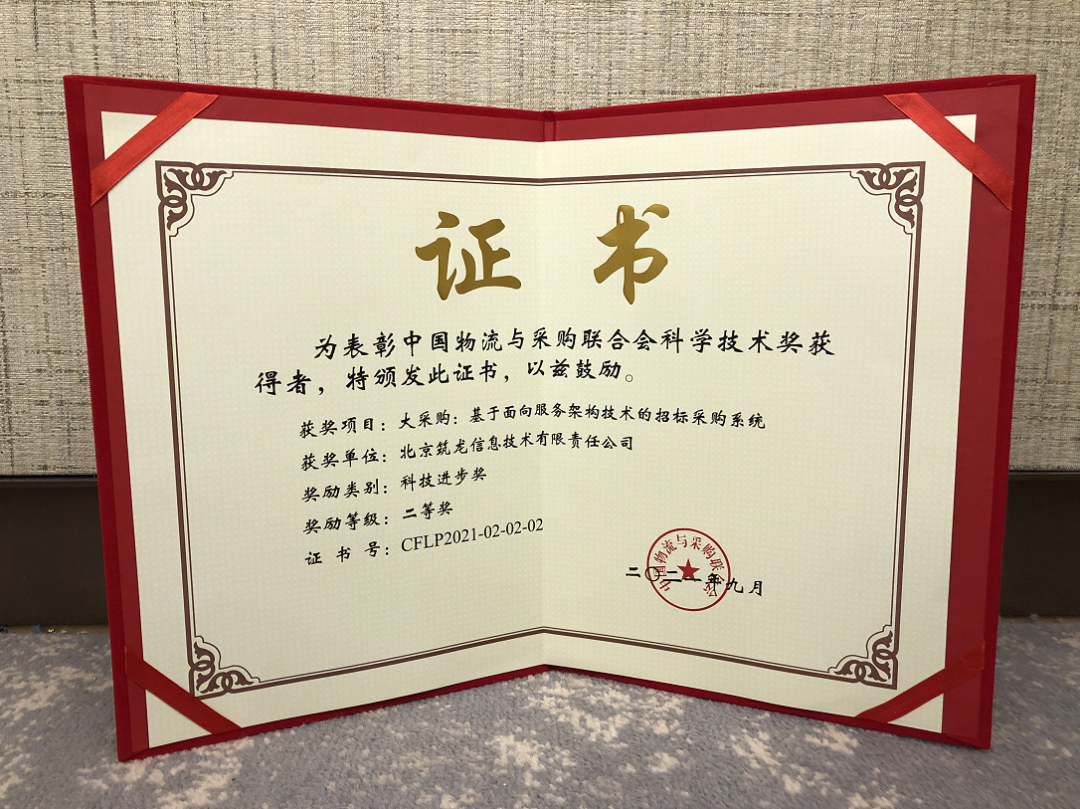 “中國物流與采購聯(lián)合會科學(xué)技術(shù)獎”創(chuàng)辦于2002年,是依據(jù)國務(wù)院《國家科學(xué)技術(shù)獎勵條例》,經(jīng)國家科學(xué)技術(shù)獎勵辦公室批準(zhǔn)設(shè)立的全國性科學(xué)技術(shù)獎(國科獎社證字第0059號),旨在獎勵在全國物流與采購以及生產(chǎn)資料流通領(lǐng)域中的技術(shù)發(fā)明與科學(xué)技術(shù)進步成果,由中華人民共和國科技部批準(zhǔn)并登記備案。該獎項已經(jīng)得到了行業(yè)內(nèi)的廣泛關(guān)注和認(rèn)可,成為我國物流與采購及生產(chǎn)資料流通領(lǐng)域內(nèi)的標(biāo)志性獎項。基于面向服務(wù)架構(gòu)技術(shù)的招標(biāo)采購系統(tǒng),為政企采購與招標(biāo)全鏈路數(shù)字化智能化賦能由北京筑龍信息技術(shù)有限責(zé)任公司研發(fā)申報的“大采購:基于面向服務(wù)架構(gòu)技術(shù)的招標(biāo)采購系統(tǒng)”(以下簡稱為“大采購”)斬獲2021年度“科技進步獎”二等獎。