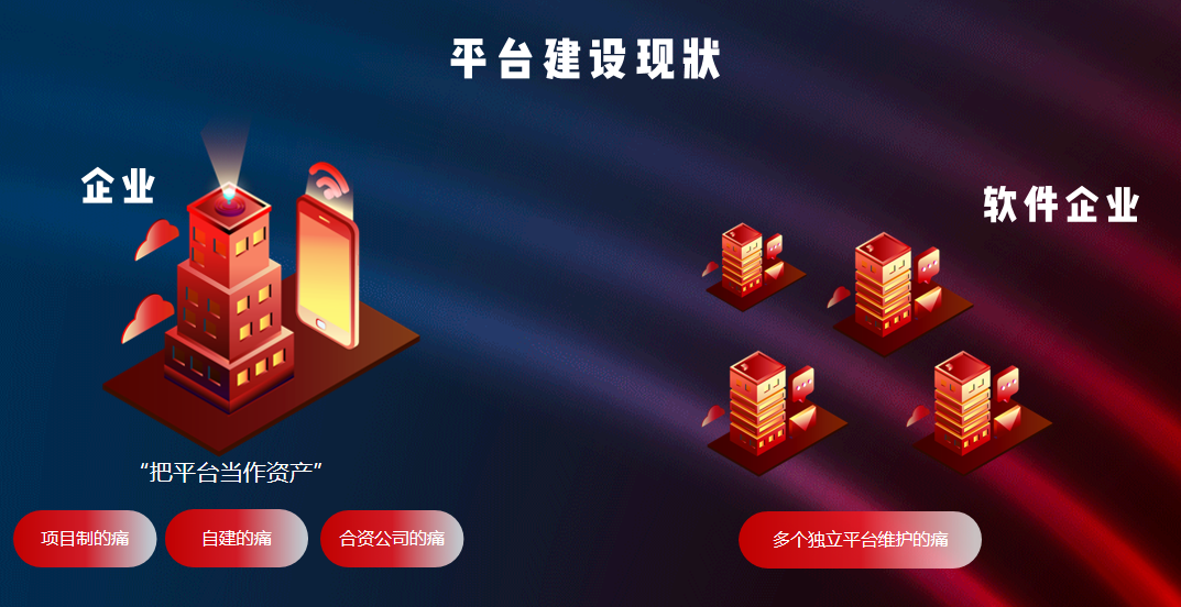 在這個過程中北京筑龍發(fā)現(xiàn),隨著技術(shù)的更新迭代以及其他因素,1.0的平臺建設(shè)完成之后,又要建設(shè)2.0的平臺,可能1.0完全要推翻重來,那之前所有的積淀就沒有了。像北京筑龍這樣的軟件服務(wù)商,也存在多個平臺共同維護(hù)的痛。每個項目都希望配備最優(yōu)秀的項目經(jīng)理,最優(yōu)質(zhì)的團(tuán)隊,北京筑龍也樂意這樣做,但隨著平臺數(shù)量的增加,人員規(guī)模越來越大,管理成本越來越高,就像穿著棉襖過河一樣,越走越沉重,所以對軟件企業(yè)也帶來一系列的挑戰(zhàn)。