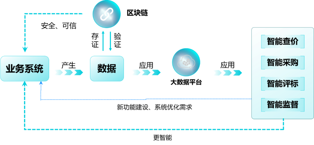 02、區(qū)塊鏈技術(shù)在行業(yè)中的應(yīng)用區(qū)塊鏈的出現(xiàn)更像是一個(gè)量身訂制的針對(duì)性解決方案。2018年開(kāi)始,北京筑龍嘗試使用區(qū)塊鏈技術(shù)解決交易流程中電子數(shù)據(jù)易變、易篡改、易丟失等普遍性難題,從而保障交易數(shù)據(jù)的真實(shí)性與完整性。北京筑龍運(yùn)用“互聯(lián)網(wǎng)+公共資源交易+區(qū)塊鏈”的模式理念和科技手段破解交易流程中電子數(shù)據(jù)易變、易篡改、易丟失的普遍性難題,打造公共資源交易領(lǐng)域具有公信力的區(qū)塊鏈服務(wù)平臺(tái),構(gòu)建了六個(gè)應(yīng)用規(guī)劃:第一,構(gòu)建統(tǒng)一存證體系:將公共資源交易中各角色在關(guān)鍵環(huán)節(jié)的結(jié)果數(shù)據(jù)運(yùn)用區(qū)塊鏈技術(shù)永久、安全的存儲(chǔ),同時(shí),可以在任意時(shí)間節(jié)點(diǎn)提供數(shù)據(jù)存在性、真實(shí)性的證明。構(gòu)建統(tǒng)一的存證體系,保證交易過(guò)程關(guān)鍵環(huán)節(jié)數(shù)據(jù)的真實(shí)性和可追溯性。第二,構(gòu)建公共資源交易智能監(jiān)管體系:根據(jù)區(qū)塊鏈的信息存證、共享賬本、可溯源的特性,建立智能監(jiān)管體系,保證交易流程合法合規(guī),提高監(jiān)管數(shù)據(jù)同步的實(shí)時(shí)性,有利于對(duì)公共資源交易過(guò)程實(shí)施更為有效、及時(shí)的監(jiān)管。第三,構(gòu)建公共服務(wù)信息共享體系:構(gòu)建共享的、實(shí)時(shí)驗(yàn)證的、有權(quán)限管理的、可追溯的、防篡改的、可信的數(shù)據(jù)賬本,解決業(yè)務(wù)在跨組織邊界下的數(shù)據(jù)連接問(wèn)題。第四,引入智能合約技術(shù):專家抽取、開(kāi)標(biāo)入圍、清標(biāo)評(píng)審、定標(biāo)等環(huán)節(jié)制定智能合約規(guī)則,讓規(guī)則在區(qū)塊鏈上公開(kāi)透明,確保系統(tǒng)按規(guī)則進(jìn)行運(yùn)算。第五,構(gòu)建基于區(qū)塊鏈的認(rèn)證體系:交易主體在交易過(guò)程中獲得的回執(zhí)、中標(biāo)通知書等信息運(yùn)用區(qū)塊鏈技術(shù)構(gòu)建統(tǒng)一的認(rèn)證體系。第六,構(gòu)建公開(kāi)透明的信用體系:企業(yè)在交易過(guò)程中任何違法違規(guī)的行為記錄運(yùn)用區(qū)塊鏈技術(shù),構(gòu)建公開(kāi)透明的信用體系,保證信息真實(shí)有效和不可篡改,提高企業(yè)違法違規(guī)的成本,形成震懾作用。圖—招標(biāo)采購(gòu)生態(tài)演變03、區(qū)塊鏈技術(shù)在行業(yè)中的典型應(yīng)用案例從2018年開(kāi)始,北京筑龍公司率先嘗試在公共資源交易領(lǐng)域持續(xù)推動(dòng)區(qū)塊鏈技術(shù)的落地應(yīng)用,先后在深圳市、昆明市、宜賓市、湖北省、安徽省、太原市、阿壩州、阜陽(yáng)市等省市交易過(guò)程中引入并成功實(shí)現(xiàn)區(qū)塊鏈技術(shù)的落地應(yīng)用。2020年5月,深圳市建設(shè)工程電子招標(biāo)投標(biāo)平臺(tái)成為國(guó)內(nèi)建設(shè)工程電子招投標(biāo)領(lǐng)域首個(gè)交易全流程“區(qū)塊鏈+招標(biāo)投標(biāo)”平臺(tái)。“區(qū)塊鏈+招標(biāo)投標(biāo)”成功實(shí)現(xiàn)了深圳建設(shè)工程電子招標(biāo)投標(biāo)業(yè)務(wù)全流程數(shù)據(jù)的“及時(shí)存證,實(shí)時(shí)核驗(yàn)”。這也宣告著區(qū)塊鏈技術(shù)在招標(biāo)采購(gòu)行業(yè)內(nèi)由概念轉(zhuǎn)為行動(dòng),招標(biāo)采購(gòu)行業(yè)的“區(qū)塊鏈新紀(jì)元”正式啟幕。圖-深圳市“區(qū)塊鏈+招標(biāo)投標(biāo)應(yīng)用”2020年6月,昆明市公共資源交易區(qū)塊鏈平臺(tái)“昆易鏈”正式上線運(yùn)行。昆易鏈”下設(shè)主體庫(kù)、業(yè)績(jī)庫(kù)、信用庫(kù)三大數(shù)據(jù)庫(kù),通過(guò)對(duì)主體業(yè)績(jī)、信用、不良行為等進(jìn)行存證、共享,實(shí)現(xiàn)交易數(shù)據(jù)跨部門、跨區(qū)域共同維護(hù)和利用,打通監(jiān)管部門間信息不對(duì)稱的“數(shù)據(jù)壁壘”,促使“信息互聯(lián)網(wǎng)”向“價(jià)值互聯(lián)網(wǎng)”“信任互聯(lián)網(wǎng)”積極轉(zhuǎn)變。昆明市公共資源交易運(yùn)用區(qū)塊鏈技術(shù)實(shí)現(xiàn)了交易存證+交易監(jiān)管+交易主體存證+主體信用數(shù)據(jù)存證,成為國(guó)內(nèi)第一個(gè)在公共資源交易領(lǐng)域全流程運(yùn)用區(qū)塊鏈技術(shù)的城市。圖-昆明市公共資源交易區(qū)塊鏈平臺(tái)“昆易鏈”上線除應(yīng)用于交易平臺(tái)外,基于“區(qū)塊鏈”技術(shù)的主體庫(kù)平臺(tái)也廣受關(guān)注。安徽省運(yùn)用“互聯(lián)網(wǎng)+主體庫(kù)信息+區(qū)塊鏈”的模式理念和科技手段破解業(yè)務(wù)流程中主體庫(kù)數(shù)據(jù)易變、易篡改、易丟失的普遍性難題,打造公共資源交易領(lǐng)域具有公信力的“區(qū)塊鏈主體庫(kù)平臺(tái)”,有效保障了主體庫(kù)數(shù)據(jù)的真實(shí)性、完整性和可追溯性。也標(biāo)志著北京筑龍基于區(qū)塊鏈技術(shù)的招標(biāo)采購(gòu)交易平臺(tái)從市級(jí)向省級(jí)區(qū)域邁進(jìn)。圖-安徽省公共資源交易市場(chǎng)主體庫(kù)此外,2020年11月,由北京筑龍和騰訊云聯(lián)合打造的 “騰訊云公共資源交易區(qū)塊鏈服務(wù)平臺(tái)”成功入選“2020年世
