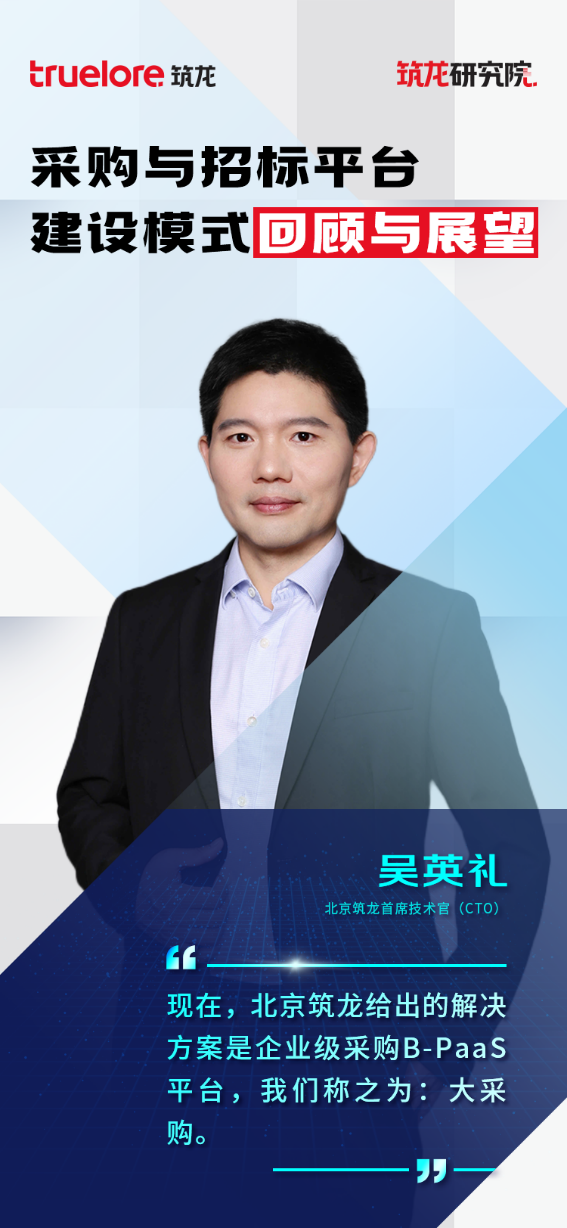 本次我們邀請到北京筑龍CTO吳英禮,聽吳英禮先生講述中國采購與招標信息化、數(shù)字化的發(fā)展歷程進行,以及采購與招標平臺建設模式發(fā)展趨勢,即基于B-PaaS平臺為B端交易提供適合自己的專業(yè)采購與招標數(shù)字化產(chǎn)品及服務。