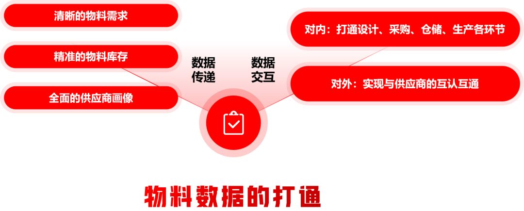 因此,想要實現(xiàn)供應鏈的數(shù)字化,物料數(shù)據(jù)的打通是關鍵。王良指出,只有在物料數(shù)據(jù)打通的情況下,企業(yè)才能明確物料需求、精準的物料庫存、全面的供應商畫像。而物料數(shù)據(jù)的打通包含兩層含義:一個是對內打通,打通設計、采購、倉儲、生產各環(huán)節(jié);對外則是實現(xiàn)與供應商的互認互通。只有實現(xiàn)了物料數(shù)據(jù)在供應鏈各環(huán)節(jié)的標準打通,才能清晰了解物料采購需求,精準的匹配物料庫存,全面的掌握供應商情況,進而真正實現(xiàn)供應鏈數(shù)字化轉型。