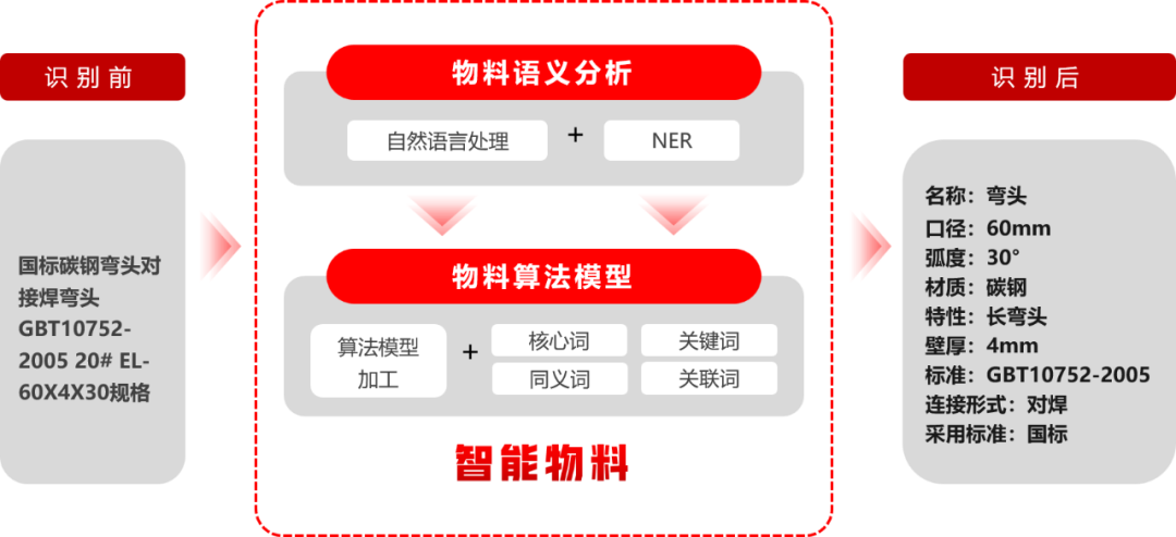 北京筑龍作為一家采購供應鏈數(shù)字化產品及服務提供商,在智能物料方面有多年的探索和實踐經驗。據(jù)王良介紹,北京筑龍從2018年就針對物料智能化問題開始探索,創(chuàng)新北京筑龍智能物料算法(簡稱筑龍智物)。其中兩個核心的特點是:第一,通過物料描述來識別物料;第二,不強制使用編碼,由算法進行識別、查重、匹配、統(tǒng)計等。