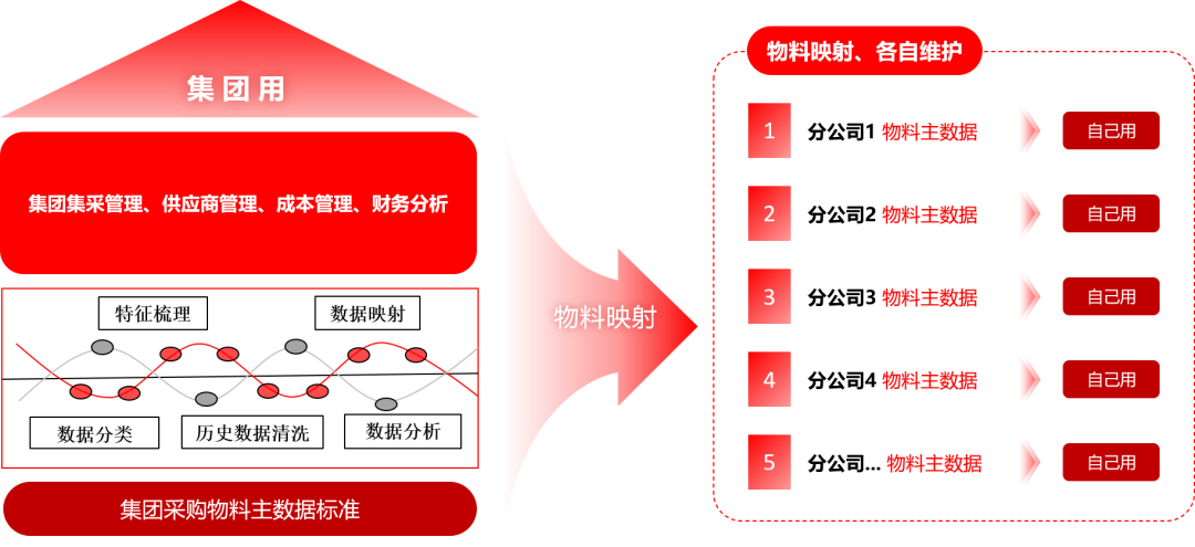 筑龍智物將雜亂且非結構化的采購物料數(shù)據(jù)進行標準化、結構化處理,制定統(tǒng)一規(guī)范的流程, 實現(xiàn)跨部門、跨系統(tǒng)的數(shù)據(jù)信息共享和編碼統(tǒng)一流轉。以智能化識別技術為手段,不再依賴人工手動整理數(shù)據(jù)對應關系,助力企業(yè)提升數(shù)據(jù)質量,實現(xiàn)數(shù)據(jù)的持續(xù)性長效治理和復用水平,為企業(yè)數(shù)字化供應鏈提供先決條件。